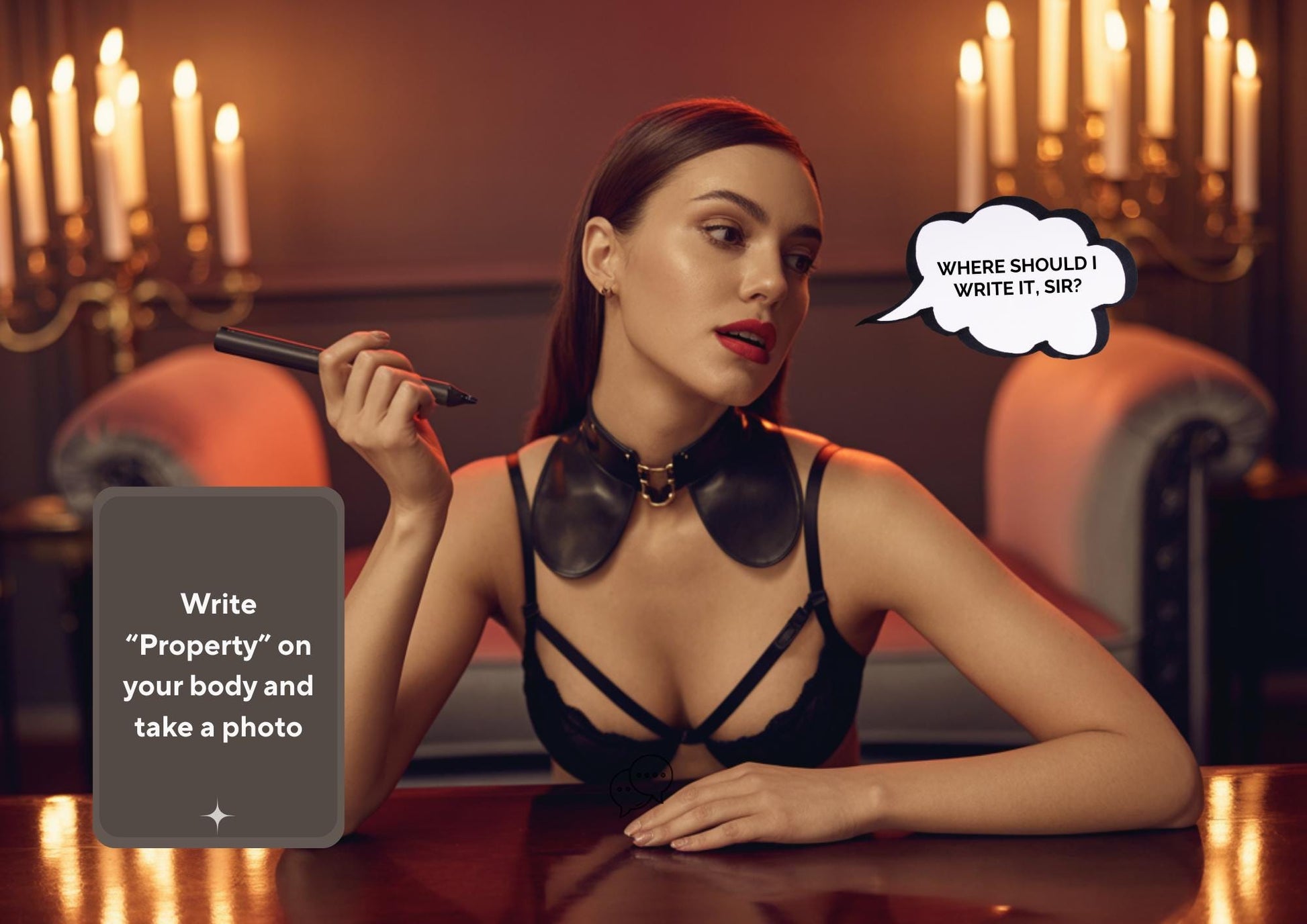Each game card is loaded with obedience rituals, spicy commands, and psychological tasks ranging from playful to extreme - handpicked to push limits and amplify D/s dynamics.