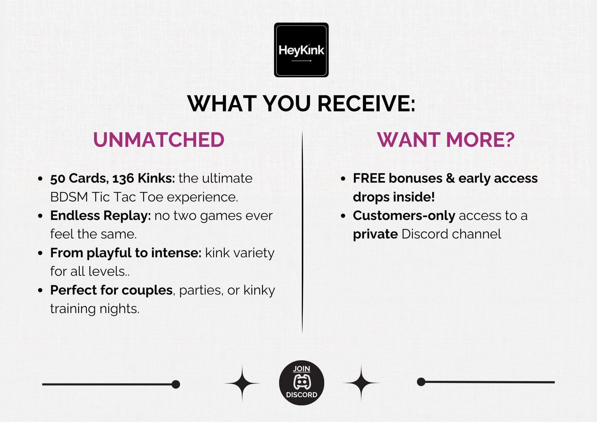 • Bonus: invitation to a private HeyKink Discord Server with free tasks and other perks.