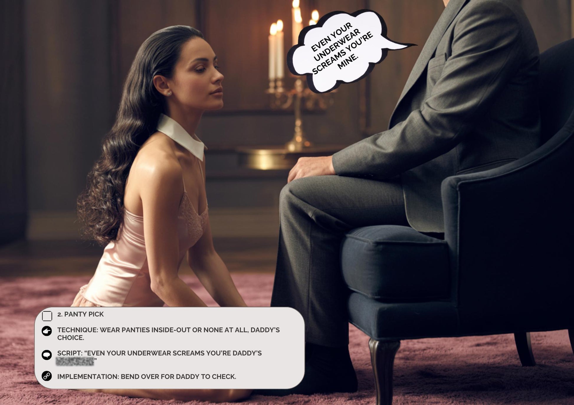• Pair with the 48 DDLG script pack for blush-based obedience