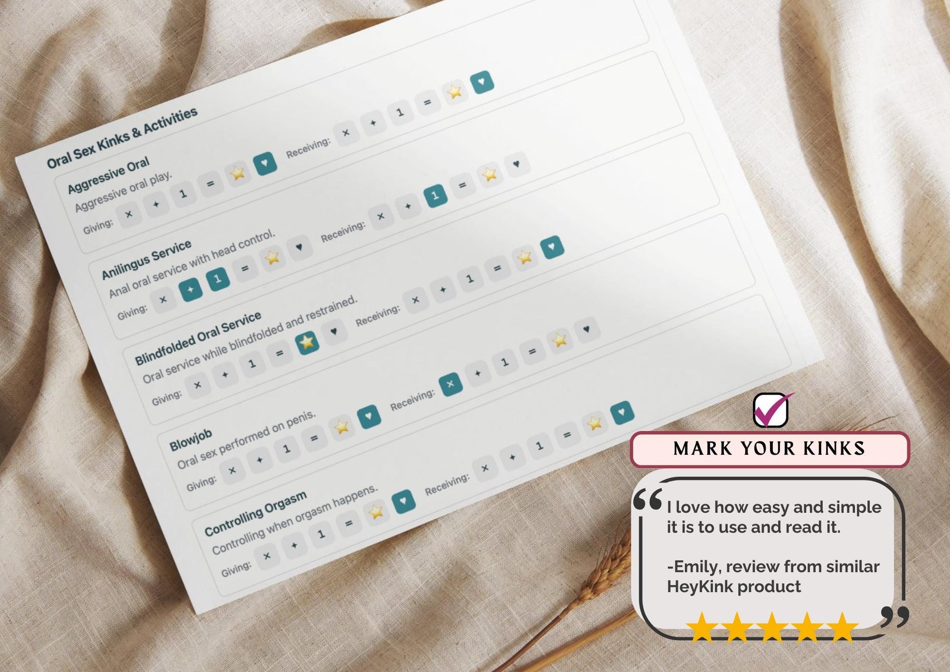 This isn't a generic list. It's your personalized roadmap to deeper connection, trust, and pleasure. Check off what excites you. Skip what doesn't. Add your own. Build your unique intimate language together.